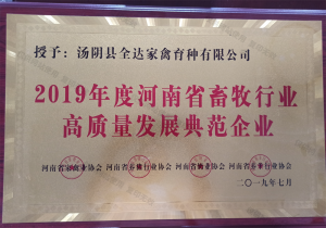 • 2019年度河南省畜牧行業高質量發展典范企業